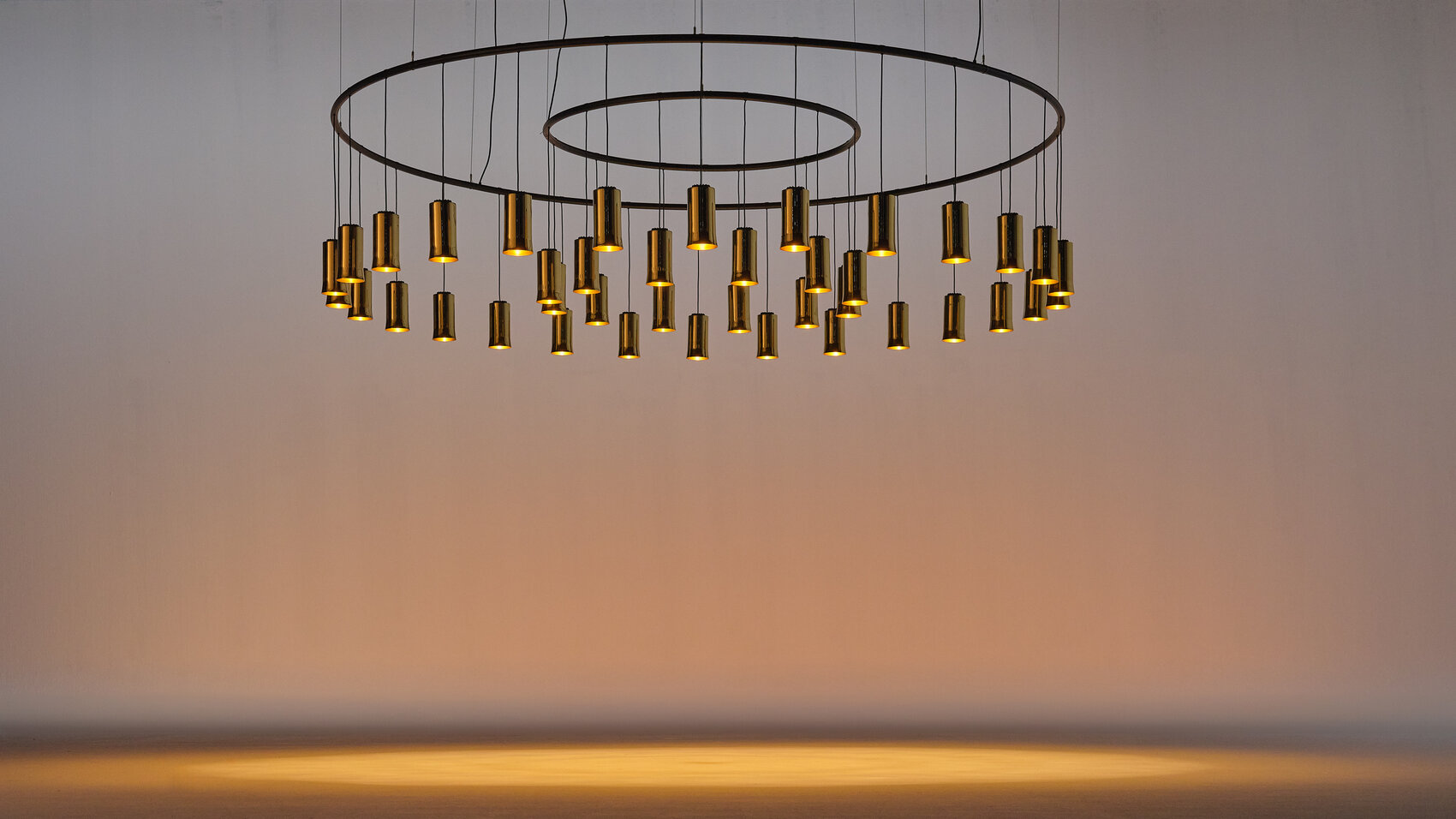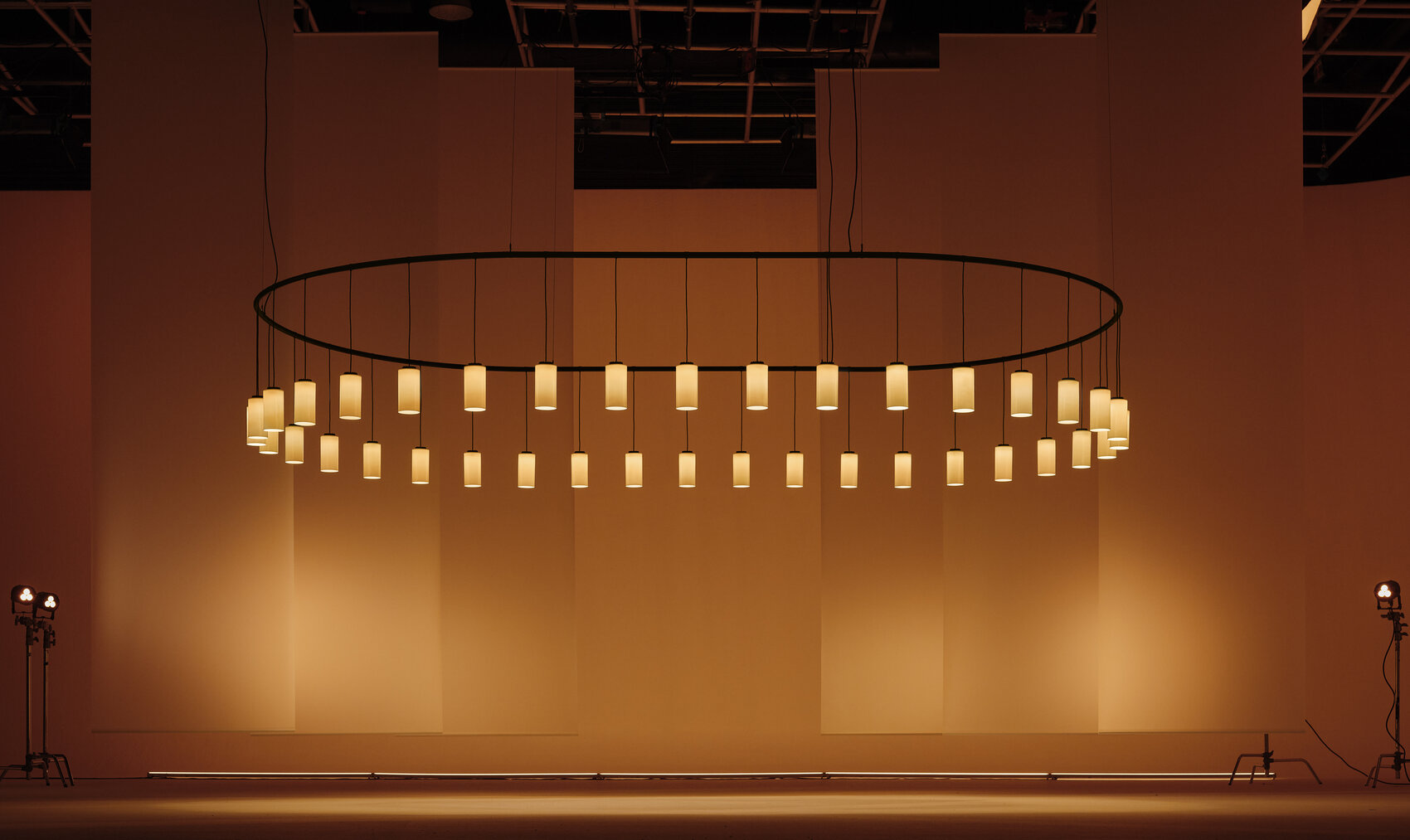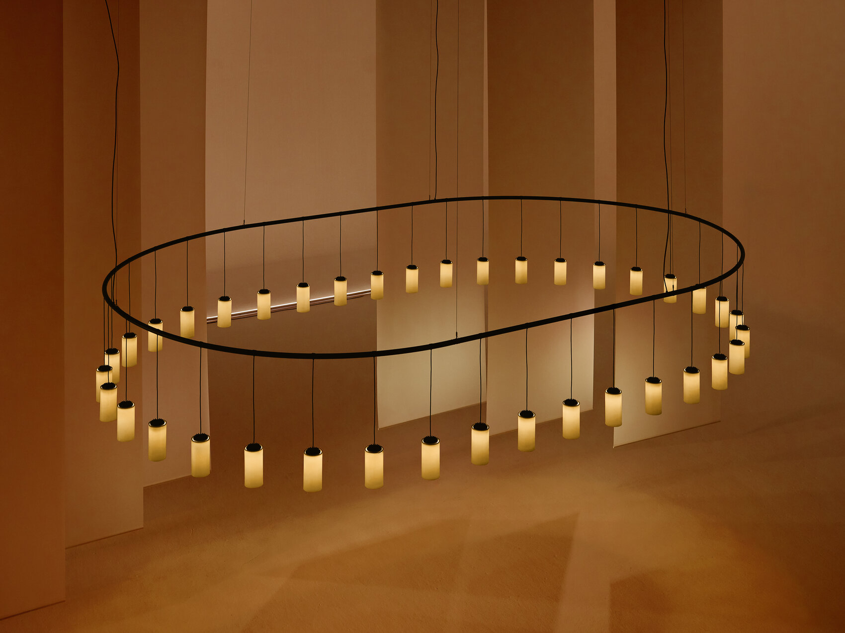With combinable diameters, it reinterprets suspended rings of light through delicate compositions with presence, balance and solemnity.