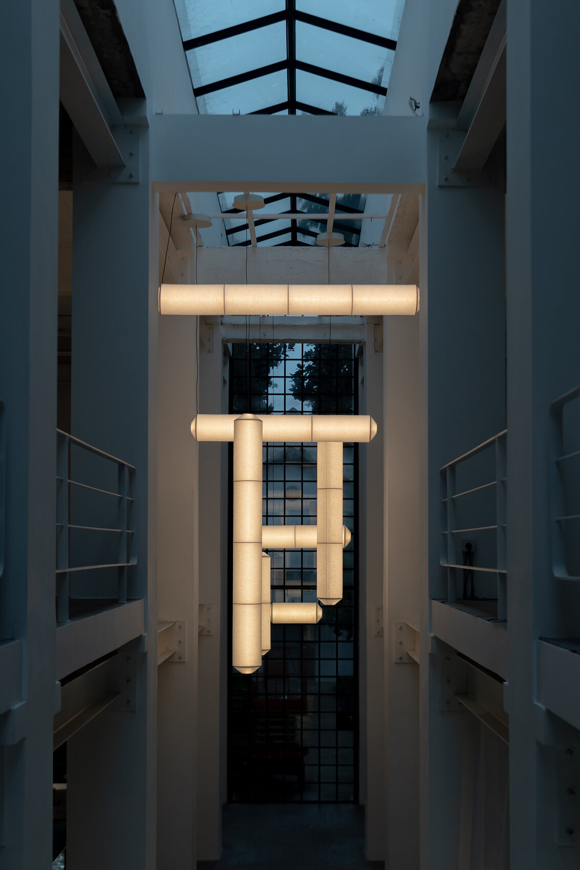Highly technical structures dressed in handmade paper. Alone or in repetition, its luminous power can vary from a whisper to an exclamation.