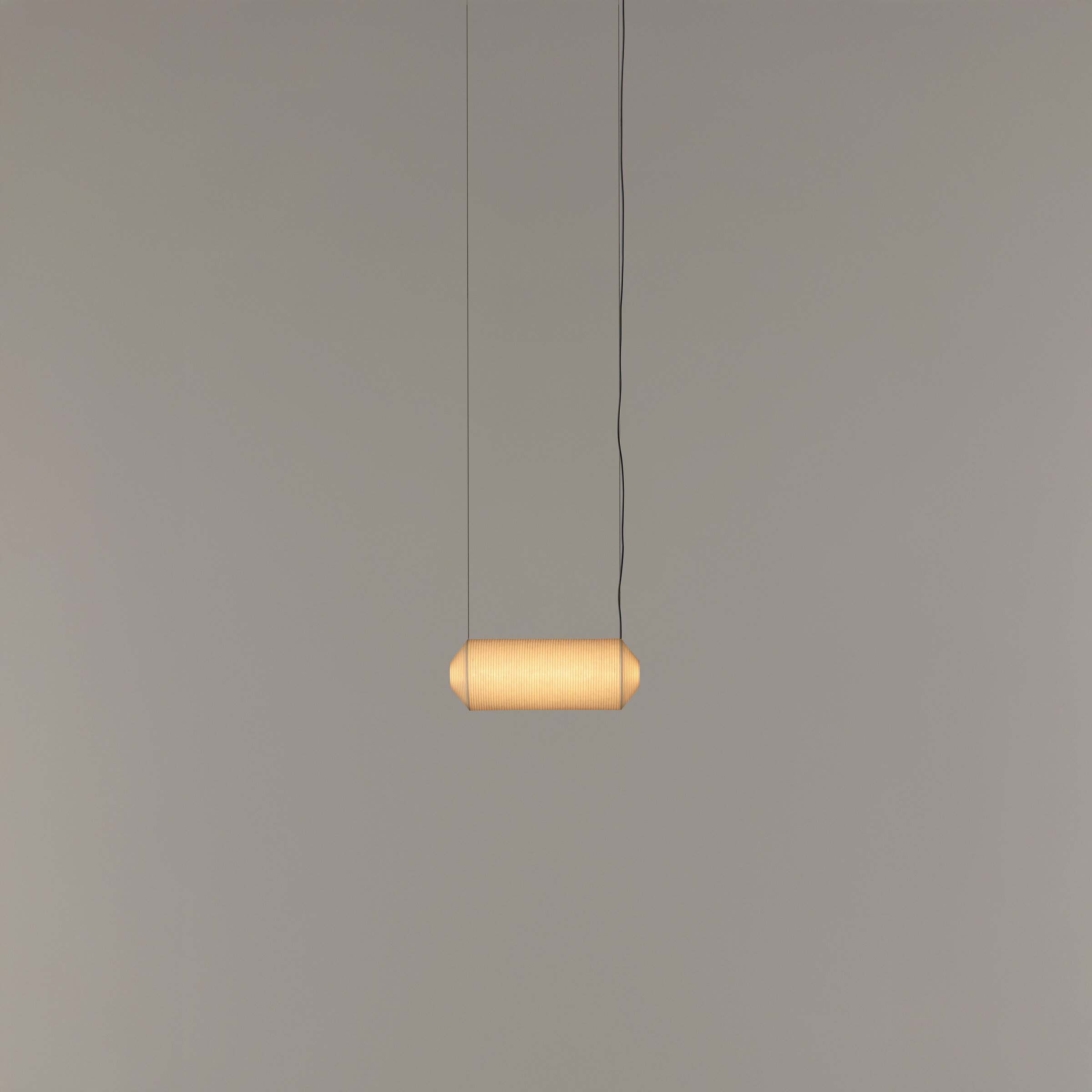 The luminaire Tekiò Horizontal is suspended above one of the few fixed elements in the residence - the large central table. Designed by Anthony Dickens, the lamp dresses its technical structure with Washi paper, handmade in Japan. Tekiò provides the light with texture and allows its intensity and colour temperature to be regulated.