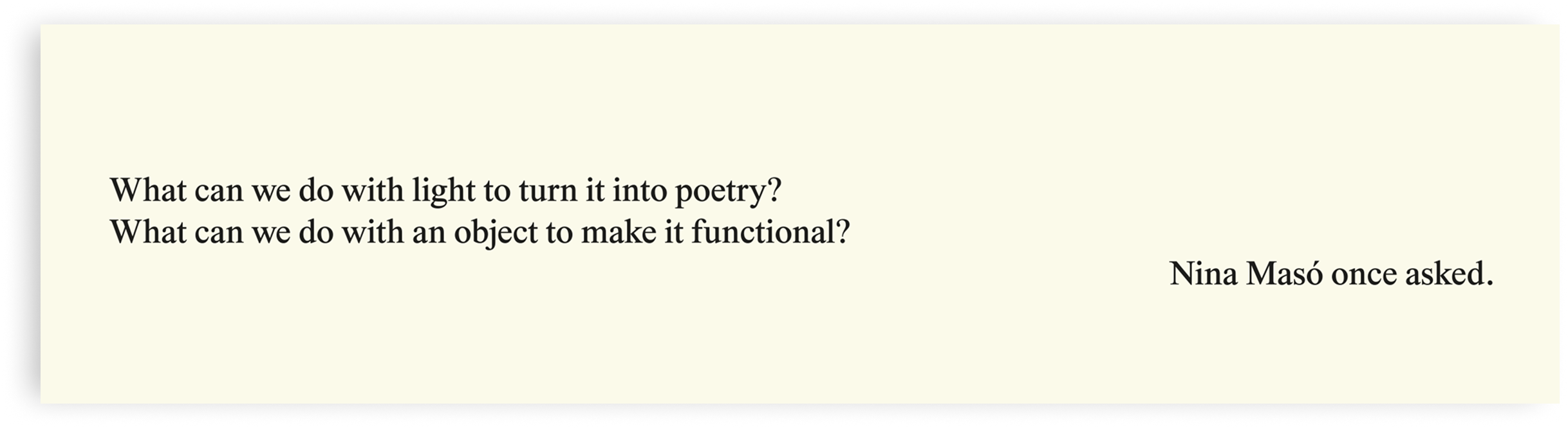 En esta edición de Euroluce (Fiera Milano, Hall 04, C06) presentamos algunos de los primeros productos del catálogo junto con otras novedades recién incorporadas que, a pesar de proceder de épocas y contextos diferentes, conviven con naturalidad y armonía lumínica. Concebido como un lienzo inspirado en los colores de la naturaleza, amarillo luz de la arena o azul noche del mar, el espacio expositivo invita a “olvidarnos un poco de las lámparas y fijarnos más en la luz” (Gabriel Ordeig, 1985), para después acercarnos y leer los objetos.