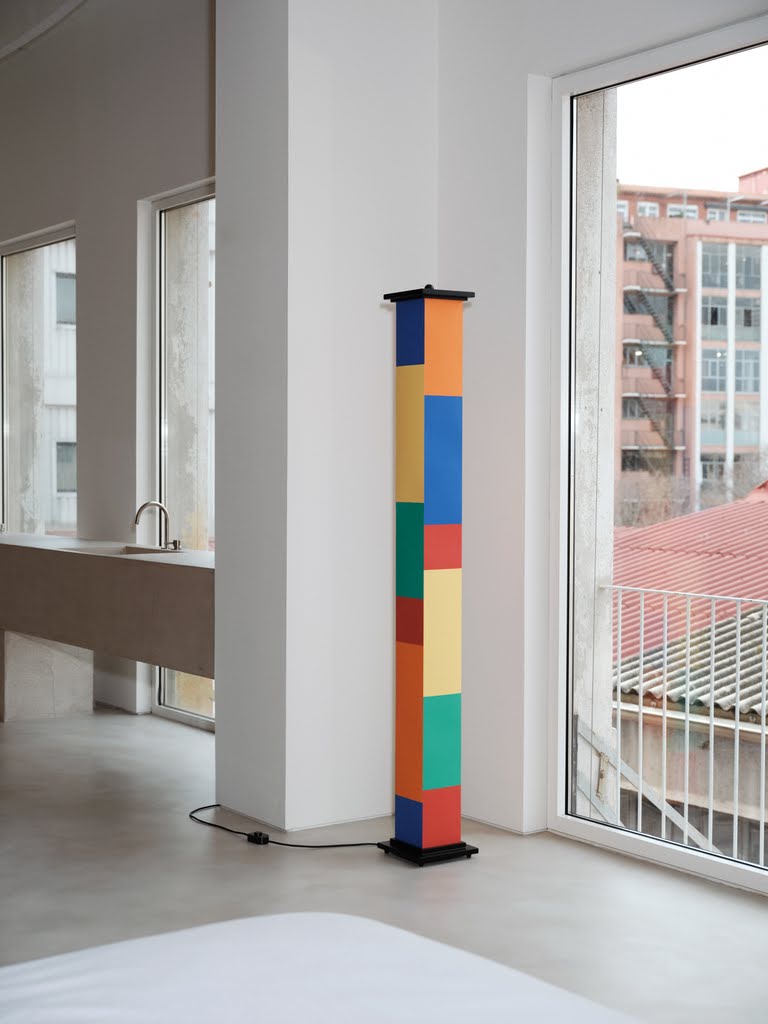 Obra de Gabriel Ordeig Cole y Nina Masó, dos de los cofundadores de Santa & Cole, es un volumen totémico que manifiesta la expresividad de los colores, creando un juego de contrastes entre tonos fríos y cálidos. El resultado es una composición visualmente dinámica y equilibrada. Contemplación y figuración. Una secuencia que celebra la abstracción geométrica de Piet Mondrian o Theo van Doesburg.