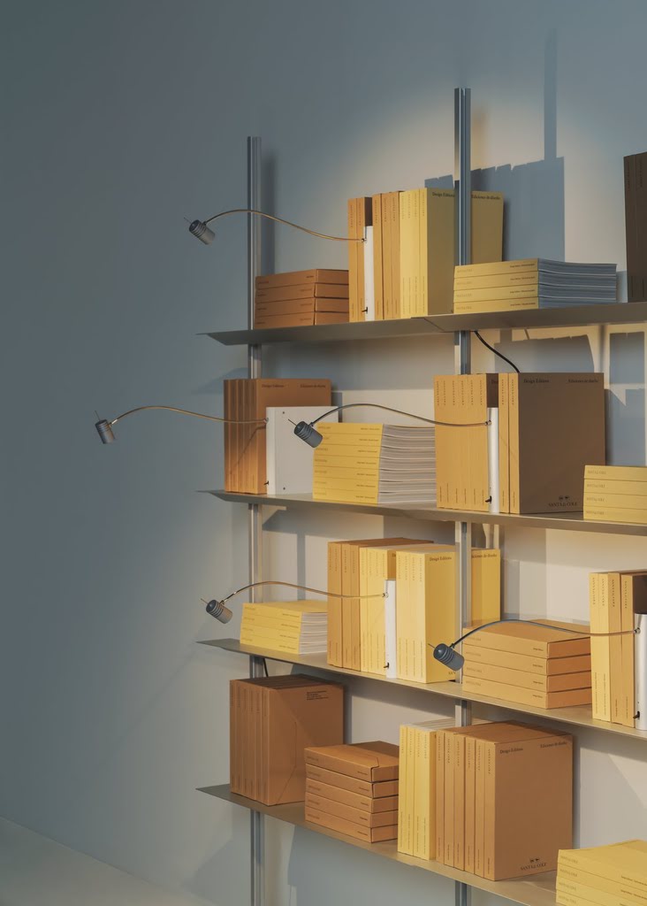 En 1986, mientras investigaba la mejor manera de iluminar su biblioteca, Oscar Tusquets necesitaba una lámpara adaptable a cualquier posición en la estantería, que ocupase poco espacio y pasase desapercibida. En sus propias palabras, “¿qué podía imaginar mejor que un libro?”.