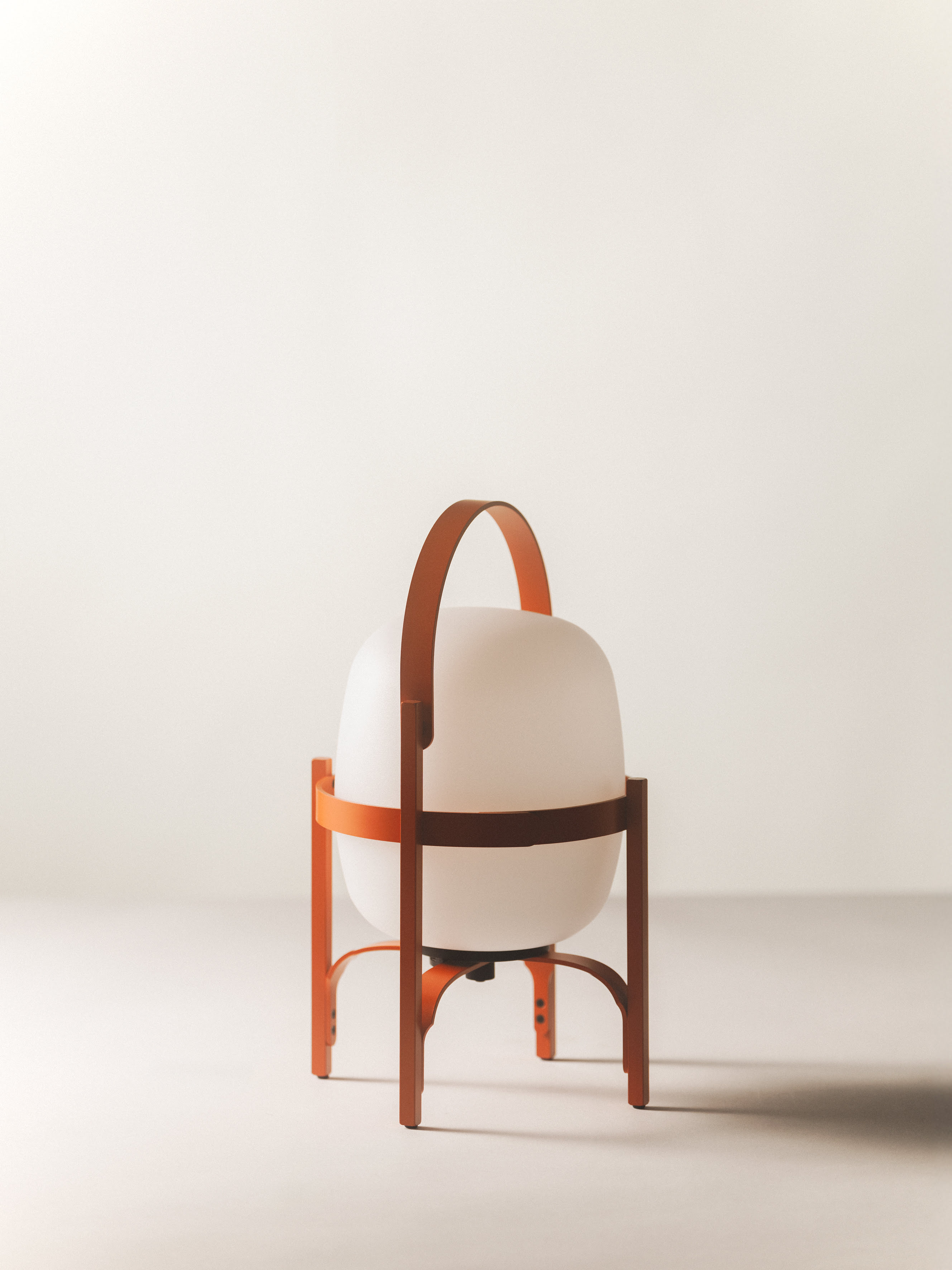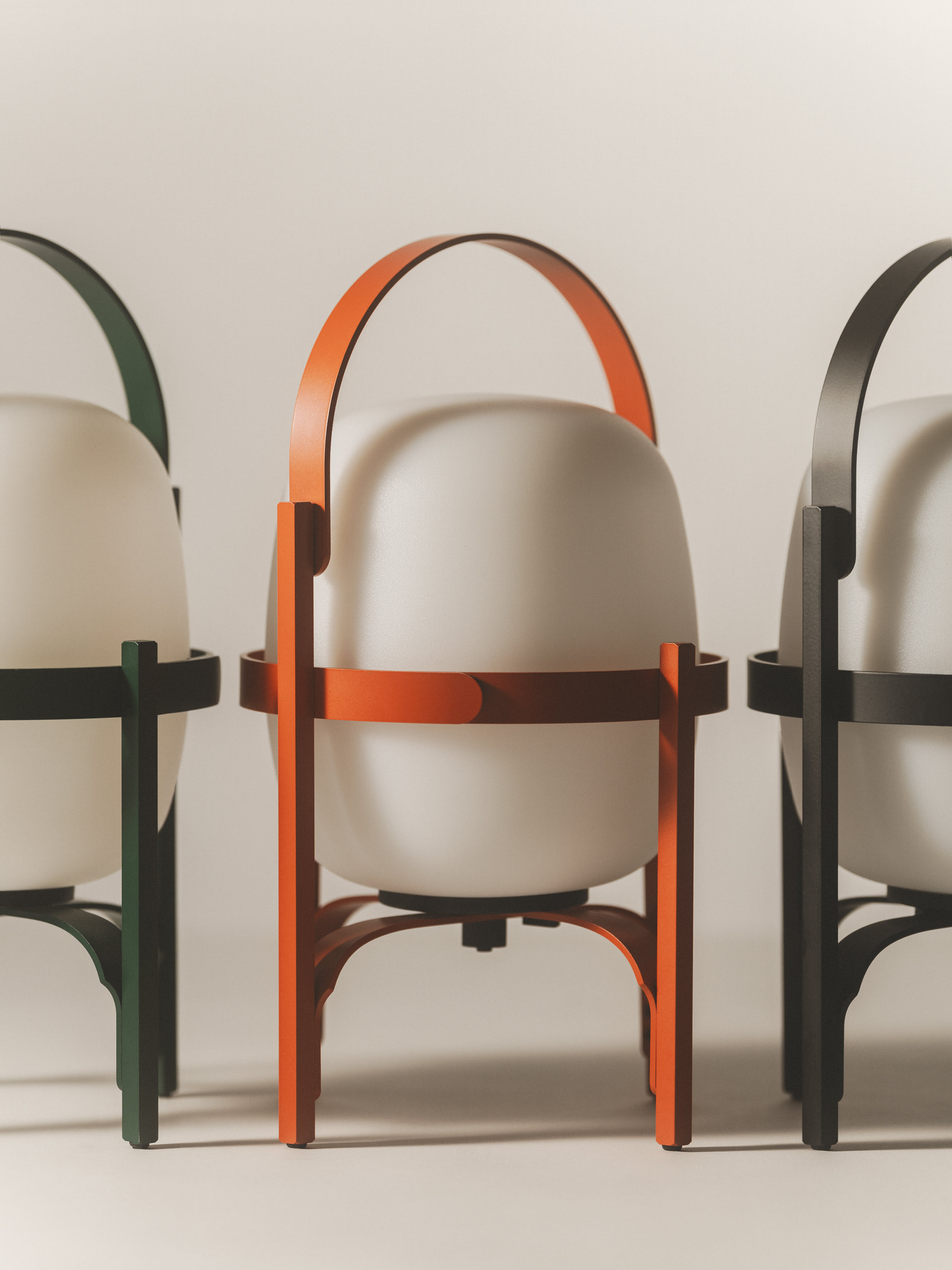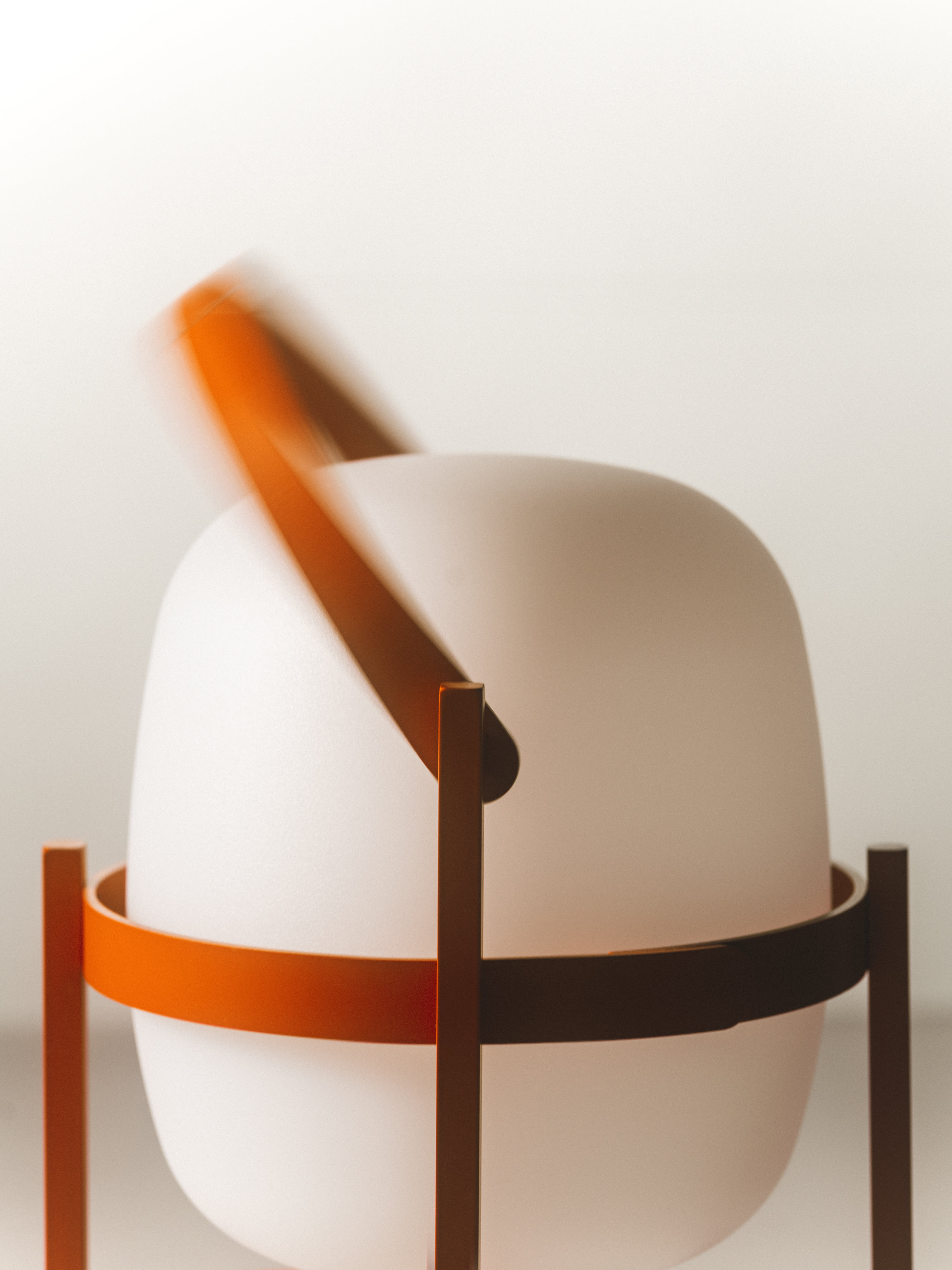 La familia Cesta se inspira en la tradicional linterna que ilumina las casas de la costa, las fincas campestres y las terrazas abiertas. De la intención de elevar el globo, nacen estructuras que abrazan y dotan una misma forma de diversas funcionalidades. Cestita Alubat es la opción más resistente. Sólida aun siendo liviana, y con tres intensidades de luz –plena, media o baja–, se descubre como una estupenda compañera para todo tipo de aventuras.