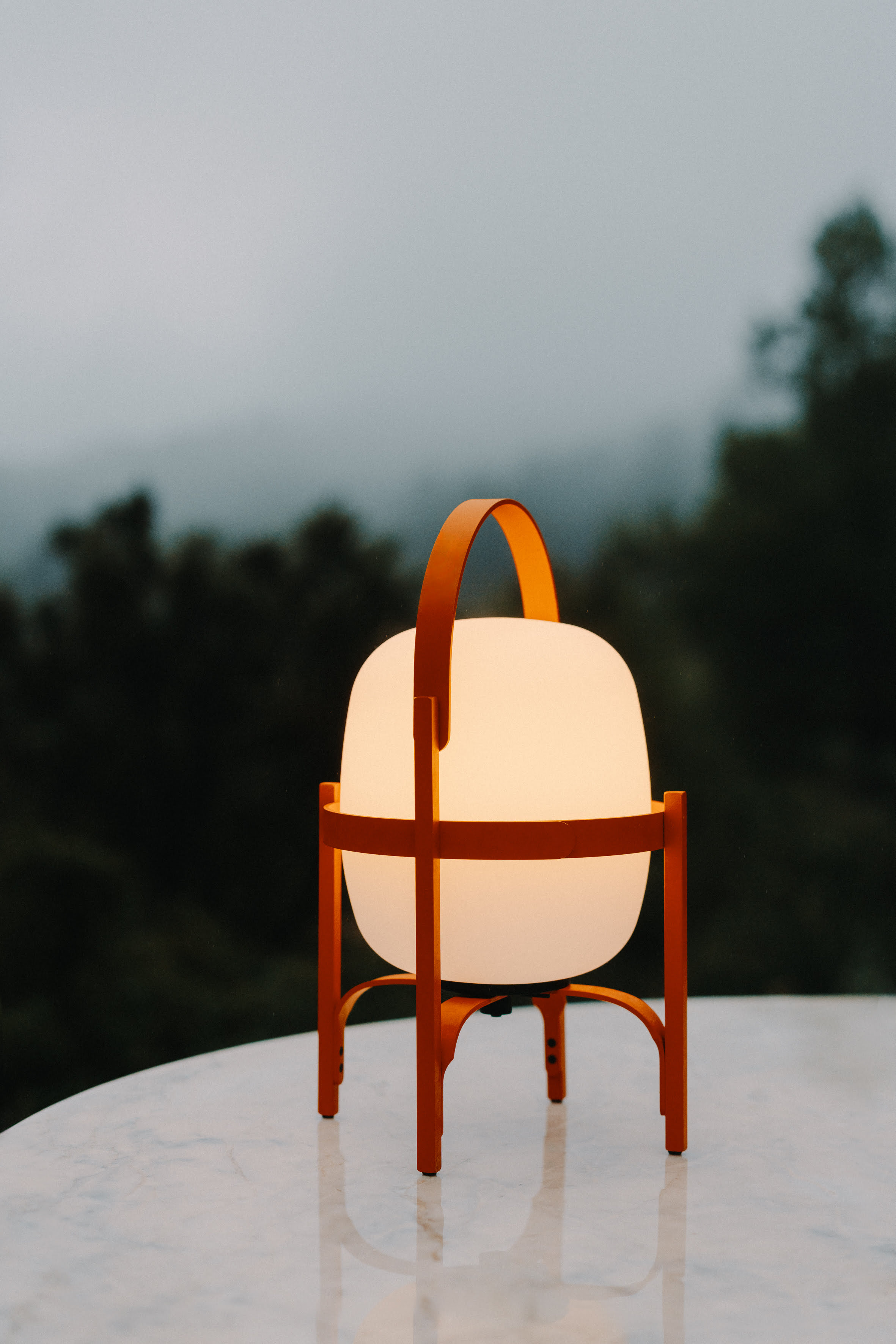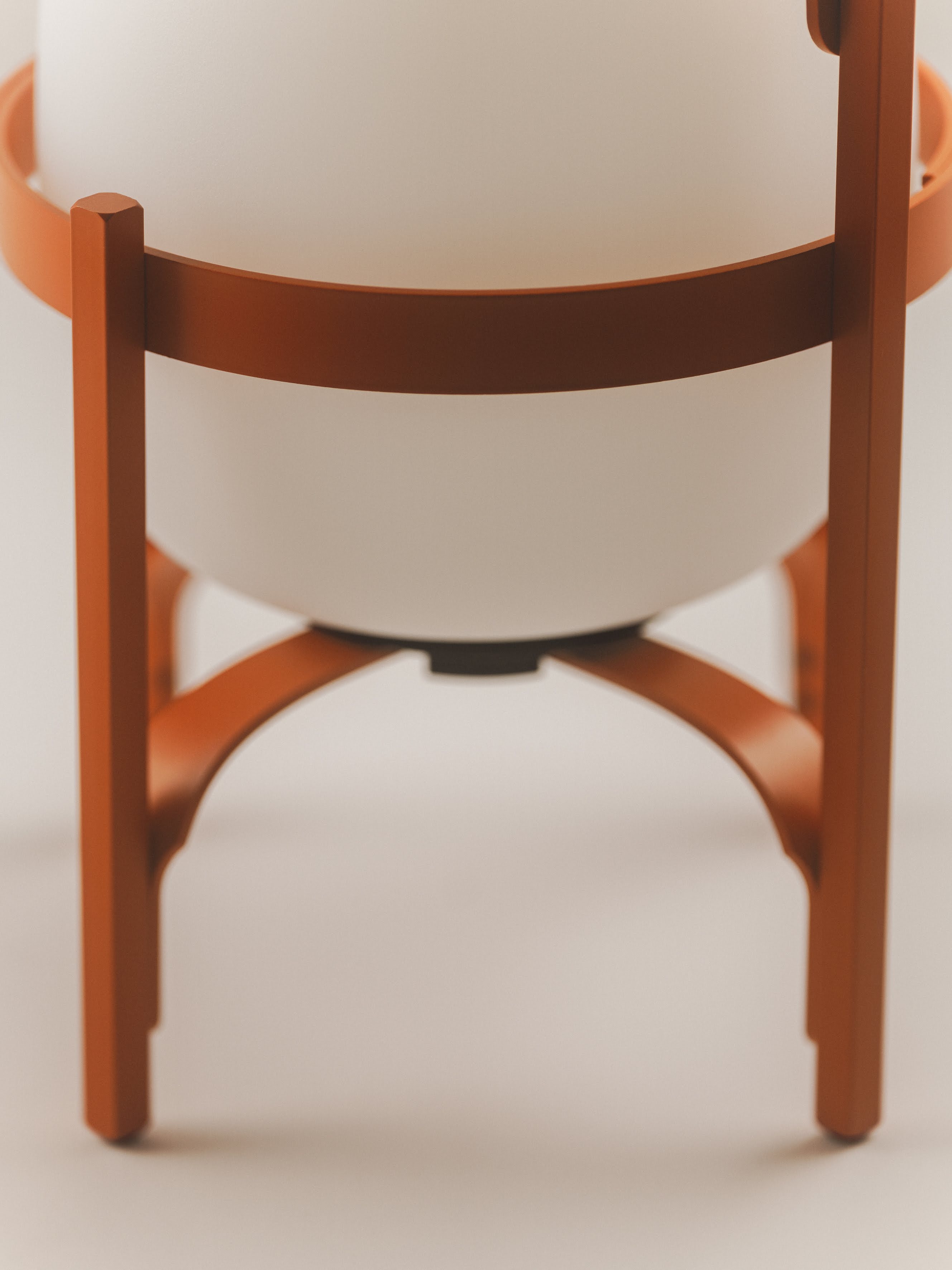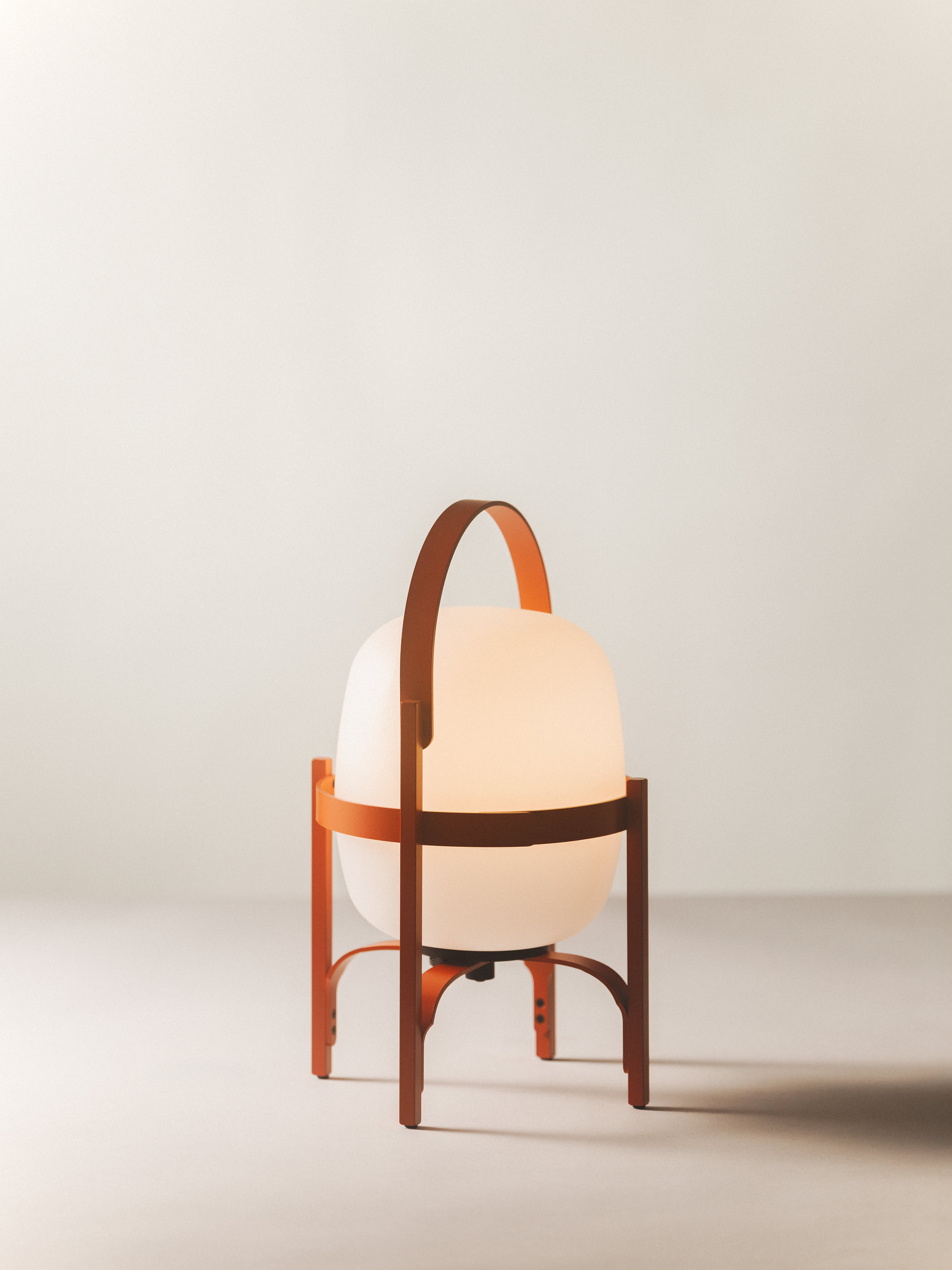 La familia Cesta se inspira en la tradicional linterna que ilumina las casas de la costa, las fincas campestres y las terrazas abiertas. De la intención de elevar el globo, nacen estructuras que abrazan y dotan una misma forma de diversas funcionalidades. Cestita Alubat es la opción más resistente. Sólida aun siendo liviana, y con tres intensidades de luz –plena, media o baja–, se descubre como una estupenda compañera para todo tipo de aventuras.