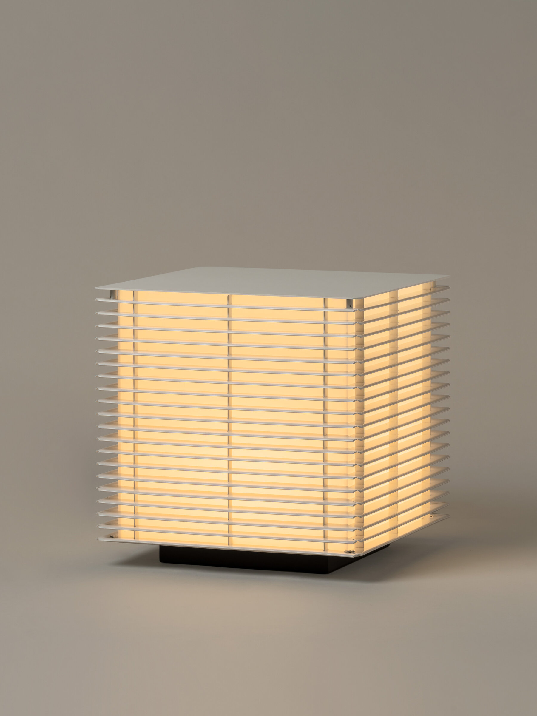 Cubo de luz racional y sereno que dialoga con el jardín, filtrando la luz con elegancia y discreción.